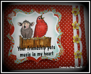 My next card is one I made the other week, just fooling around with things I had laying in the studio. I hope to find this little lady a cute challenge to enter in.